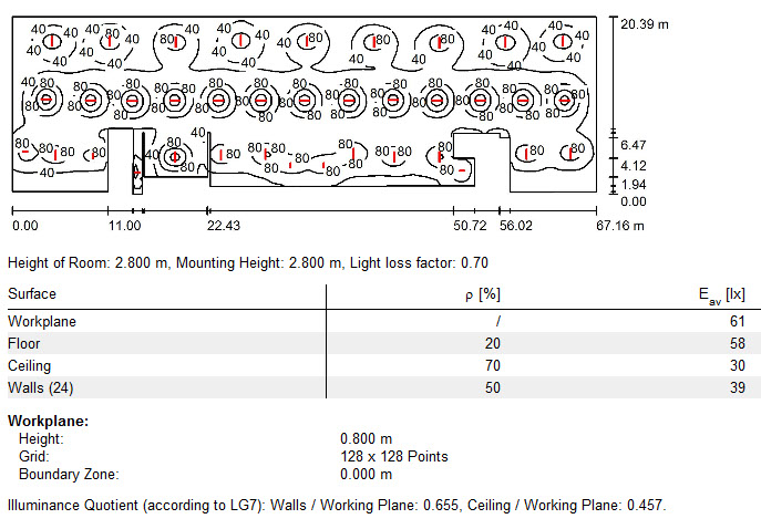 Software modelling of lighting installation (AGI32 and Dialux).