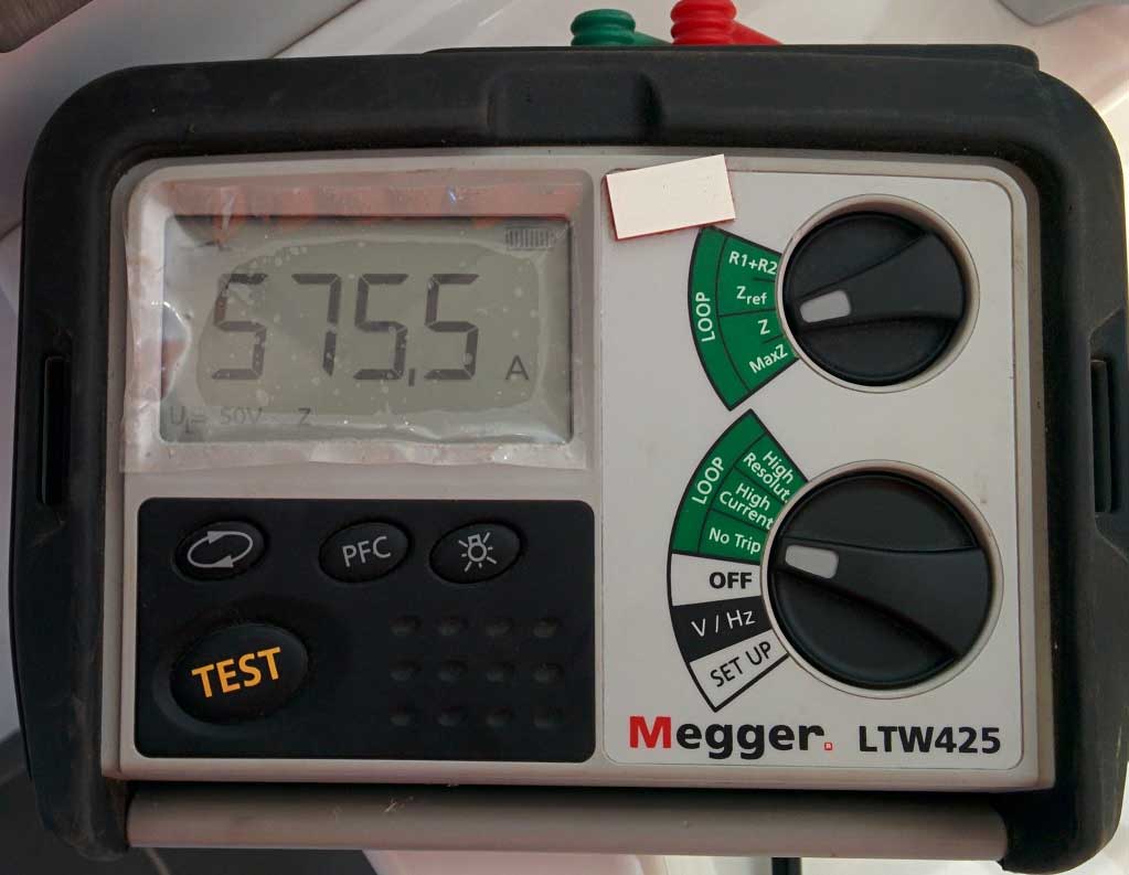 Measurement of earth fault loop impedance using calibrated meters and reporting on compliance with the requirements of the standards.